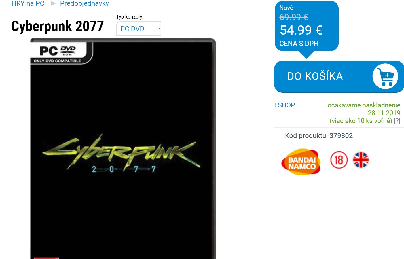 Ako je vjerovati najnovijem leaku koji nam stiže posredstvom slovačke trgovine Pro Gaming Shop, Cyberpunk 2077 bi se u prodaji trebao pojaviti 28. studenog.