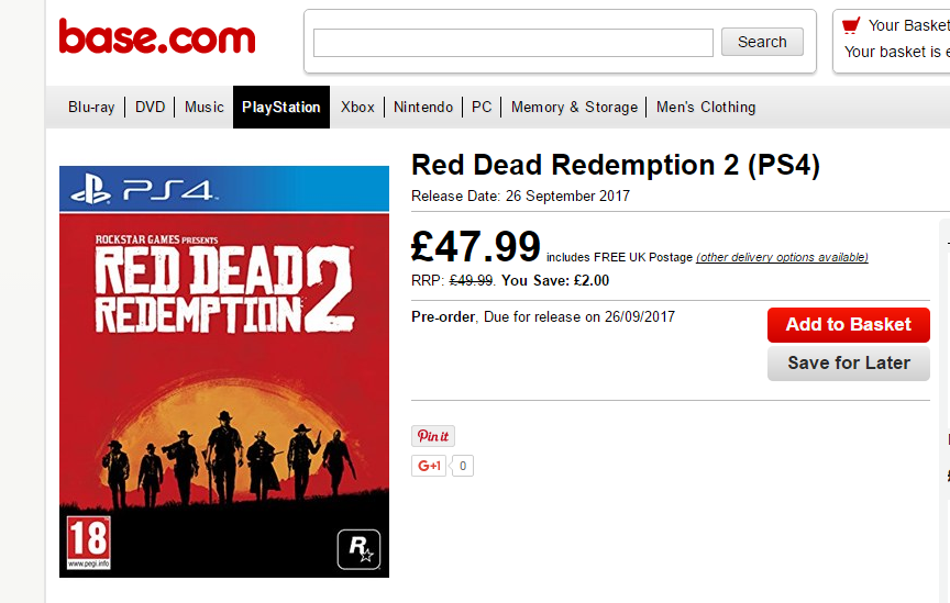 Naime, nove informacije o Red Dead Redemptionu 2 stižu nam zahvaljujući dobro poznatoj britanskoj online trgovini Base, koja je na svojoj produktnoj stranici spomenute igre navela prilično precizan datum izlaska igre – 26. rujna 2017. godine.