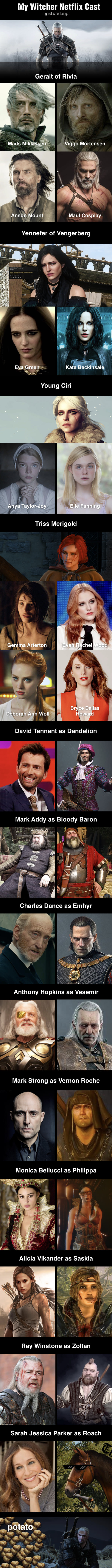 Prije nekoliko dana službeno je potvrđeno kako je u pripremi Netflixov serijal inspiriran sjajnim The Witcherom. Radi se o novom mračnom i u Game of Thrones stilu veoma brutalnom nadolazećem serijalu koji će biti inspiriran isključivo literarnim djelima Andrzeja Sapkowskoga, a iako je još rano za bilo kakve konkretnije informacije, ekipa popularnog sajta 9gag pozabavila se malo fantasy castingom, a rezultati istoga su, kao što možete vidjeti ispod, veoma interesantni.