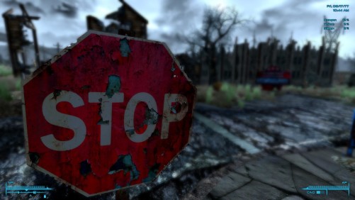 Za razliku od prekrasnog i lepršavog Obliviona koji se dičio svojim procvjetalim livadama i gustim zelenim šumama, Fallout 3 vas baca u prljavo zeleno-smeđe pustopoljine koje sežu unedogled. Tu i tamo ćete ugledati koju travku ili nisko raslinje, ali možete zaboraviti na cvijeće i drveće jer njih u Falloutu nema ili su potpuno sprženi od sveprisutne radijacije. Kada sam već počeo pričati o estetici same igre, dolazimo do mog jučerašnjeg ambicioznog istraživačkog projekta. Naime, Fallout 3 je za 2008. godinu izgledao poprilično dobro. Patio je od problema razmuljanih tekstura i pozamašnog sveopćeg konzolitisa, ali zbog odličnog gameplaya svim vizualnim (pa i funkcionalnim) nedostatcima dalo se progledati kroz prste.