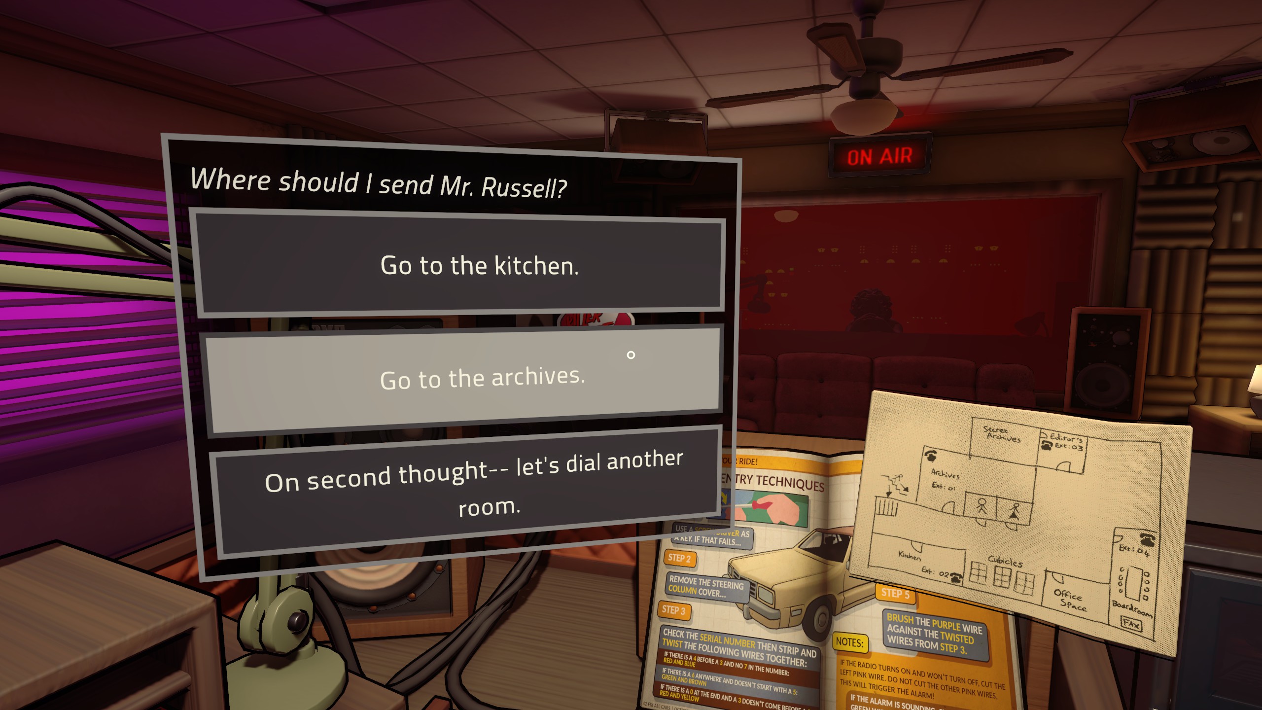 Na samom početku, imamo tutorial koji nas upoznaje sa osnovama igre; možemo uzimati stvari, bacati ih, detaljno pregledati, čučnuti i otvarati vrata. Nakon toga, igra nas uči kako biti radijski voditelj, odnosno priprema nas za emitiranje uživo u kojem ćemo puštati glazbu i reklame te nas uči kako razgovarati s ljudima i primati pozive stanovnika. Mehanike su jednostavne, ništa nije preteško, samo je bitna mala prilagodba. Osim toga, u igri ćemo imati prozorčić koji će se pojavljivati kako priča bude tekla, a služit će da donesemo neku važnu ili ne toliko važnu odluku.