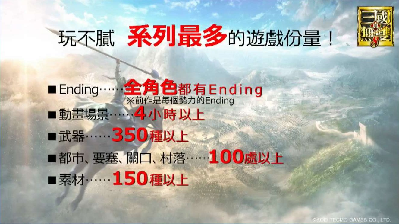 Naime, producent Dynasty Warriorsa 9 Akihiro Suzuki predstavio je tijekom tajvanskog Taipei Game Showa novu gameplay demonstraciju igre, otkrivši pri tome i nekoliko informacija vezanih za samu njenu veličinu.