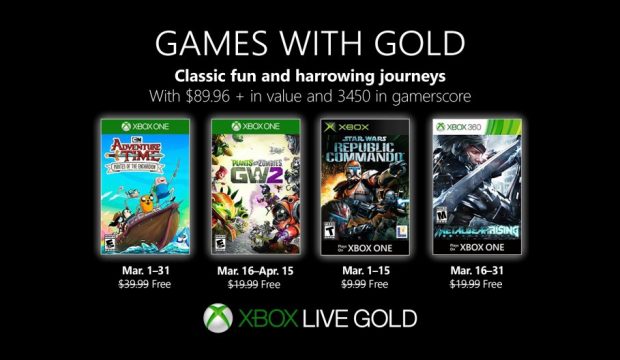 Games with Gold ponuda u ožujku izgleda veoma raznoliko, a ista nam donosi četiri zanimljiva naslova – Xbox One igre Adventure Time: Pirates of the Enchiridion i Plants vs. Zombies: Garden Warfare 2, kao i Xbox 360 hit Metal Gear Rising: Revegence te Star Wars: Republic Commando s originalnog Xboxa.
