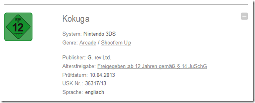 Ljubitelje japanskih shootera razveselit će informacija o tome kako će Kokuga tijekom 2013. godine pojaviti se u Europi. Njemački USK Board klasificirao je igru te je navedeno kako će ona sadržavati engleski jezik. S obzirom na to da je kao izdavač naveden G.rev, pretpostavljamo kako će raditi o digitalnom izlasku putem eShopa.