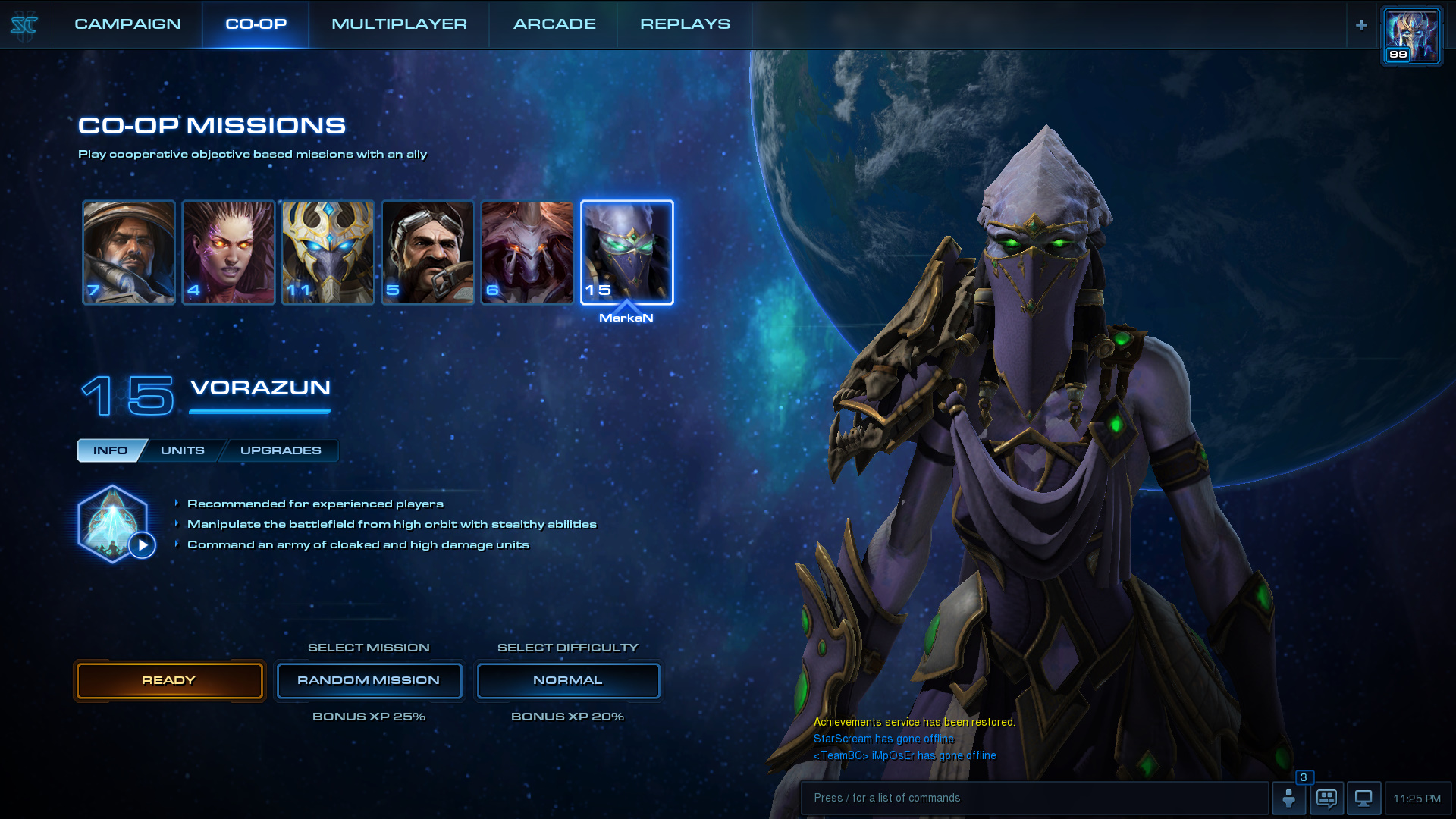 Dakle, igra se sa nasumičnim partnerom sa druge strane Battleneta ili pridruženim prijateljem protiv AI-a, no tu su razni ciljevi za postići u misiji te mogućnosti i bonusi koje svaki igrač za svoju klasu otključava XP bodovima što malo podsjeća na RPG-ovski štih WarCrafta (ili Warhammer 40k, Dawn of War II, ako ćemo po novijim standardima). Prvotni naziv moda bio je Allied Commanders te trenutno možemo igrati pod vodstvom Raynora, Swanna, Kerrigan, Zagare te Artanisa i Vorazun. Dva predstavnika svake rase i šest različitih načina igranja. Scenariji, misije i leveli su vrlo različiti, međutim nema ih puno. Očekujemo i nadamo se dodatnim sadržajima u budućnosti.