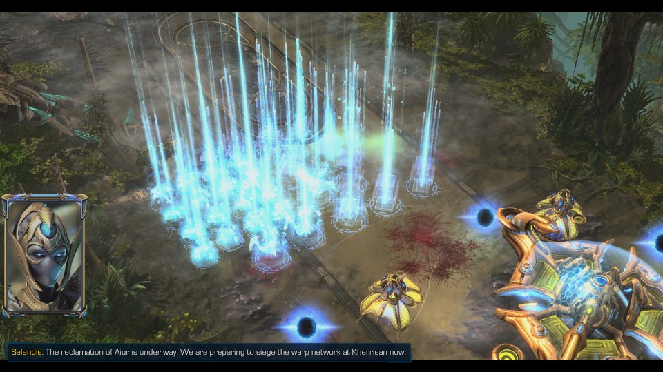 Svako malo određena misija čini se kao da bi mogla biti posljednja. Sa obzirom da postoji veliki broj priča koje još od 1998. čekaju da se upotpune, to je i više nego dobra stvar. Najprije se borimo za Spear of Adun – velebni kapitalni brod Protossa, pa zatim uz njega kako nastavljamo dalje. Poseban je gušt boriti se, tražiti solucije, raditi nadogradnje, taktizirati kroz naizgled nepremostive prepreke, te nakon svega osvrnuti se malo na prošlost i vidjeti taj kontrast, kako smo se nekad mučili i jedva stali na kraj jednom ili dvoje hibrida, a sada im ravnopravno te konstantno pariramo iz misije u misiju. Pacing je izvrstan te se cijela priča doima kao luda vožnja u zabavnom parku sve do samog kraja. Stvari se konstantno odvijaju te su strukture misija slojevite i raznolike. Od “all-in” invazije gdje se igrač fokusira samo na akciju (mikro), preko vrlo različitih misija što se odvijaju oko uvjeta (tipa: Svako malo neprijatelj napada iz procjepa tvoju bazu, no nemaš previše vremena za braniti se jer treba razoriti kristale što ih čine jačima pa… snađi se!) do standardnih misija gdje se gradi baza, ekonomija i plan te potom kreće u borbu, no i takve imaju raznih “začina” što ih čine jedinstvenima.