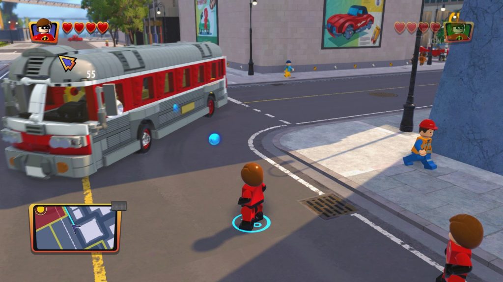 Sama igra sastoji se od 12 velikih story levela smještenih na prostoru dva grada (Municiberg i New Urbem) u kojima nas očekuje prepoznatljivi LEGO gameplay, koji se sastoji od istraživanja lokacija, skupljanja collectiblesa, mlaćenja i razbijanja svega što se nalazi pred nama i gradnje raznoraznih kockastih objekata ključnih za dalji napredak kroz igru. No, ono što je vidljivo od samog početka, jeste da je centralni hub u igri kojim se krećemo, znatno siromašniji nego u prethodnim LEGO igrama, pa je sukladno tome i sama igra znatno kraća. Ipak, sadržaja u igri definitivno ne nedostaje – tu je i ovaj put preko 100 igrivih likova (glavnih i sporednih, pa i onih iz drugih Pixarovih filmova i franšiza), kao i potpuno novi Create a Hero mode koji dosad nismo viđali u LEGO igrama. Od noviteta, izdvojio bih još i Family Buildse, u kojima gradimo velike konstrukcije koje nas vode do zaključanih i skrivenih dijelova levela u kojima se nalaze dodatni bonusi. Najzanimljivij dio igre svakako čini Crimewave mod koji je zapravo koncipiran na način da kroz niz questova koje nam daju NPC-jevi, distrikt po distrikt čistimo od kriminala, usput boreći se i s dobro poznatim zlikovcima iz filmova (Bomb Voyage, Syndrome i ostatak ekipe – svi su tu). Ukupno u igri imamo 10 Crimewave misija i pet zlikovaca, koji će nam ujedno pojesti i najveći dio vremena u igri.