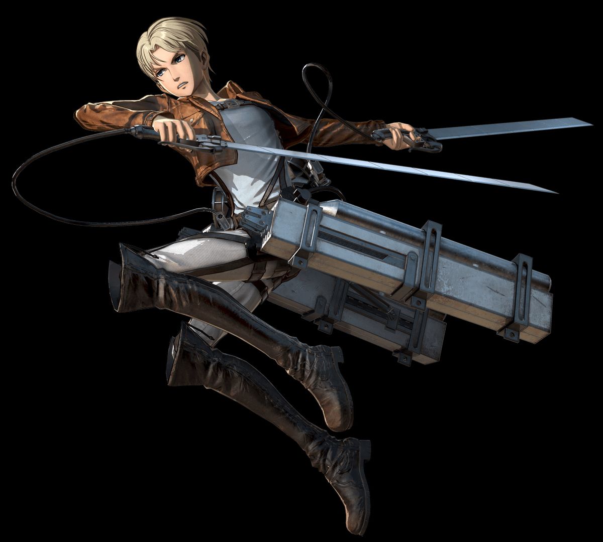 U pitanju su sljedeći likovi: Eren Jaeger, Mikasa Ackerman, Armin Arlert, Levi, Miche Zacharias, Nanaba and Gelgar.
