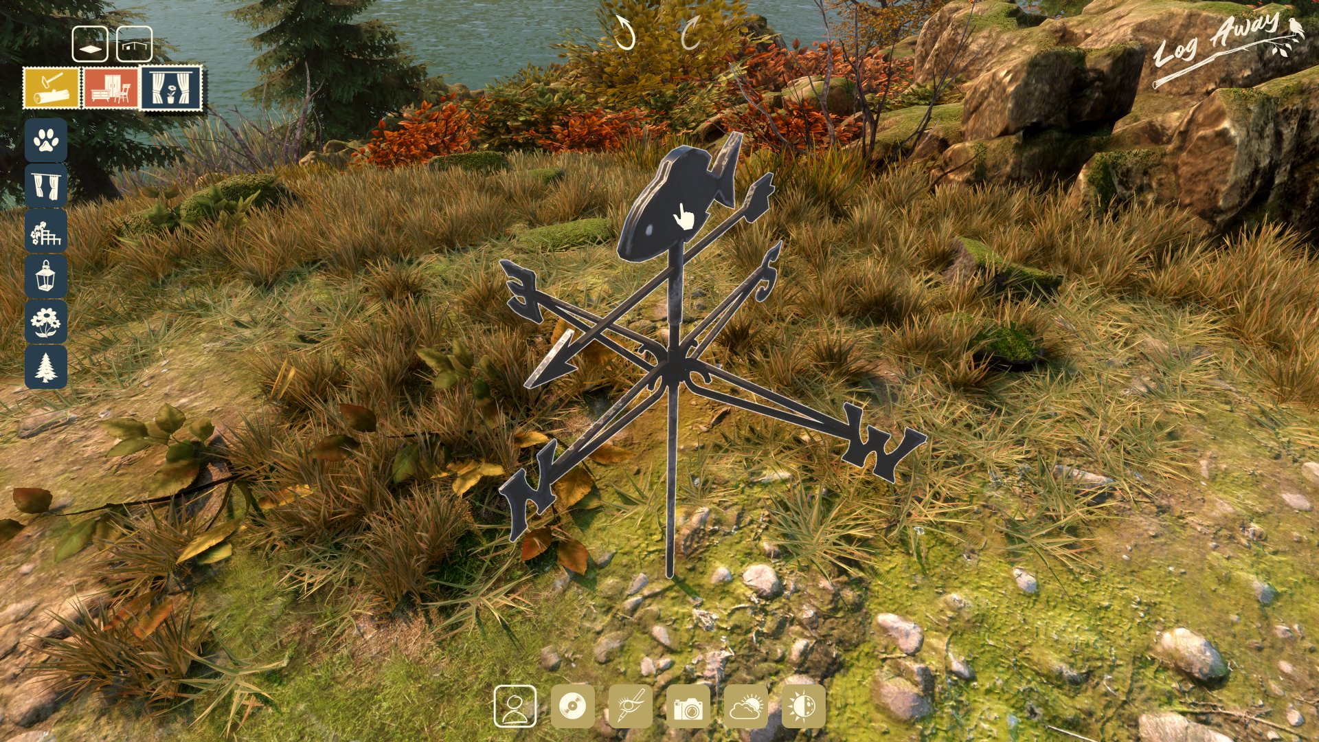 Posebna čar Log Awaya leži u njegovoj jednostavnosti i fokusiranosti na uživanje. Igrači se mogu prepustiti istraživanju u prvom licu, komunicirati s okolinom, pa čak i družiti se s životinjama koje naseljavaju ovaj svijet. Tu su i brojni alati koji omogućuju potpunu prilagodbu iskustva, od upravljanja vremenskim uvjetima, preko promjene vizualnog stila, do odabira glazbene podloge ili korištenja photo moda za bilježenje trenutaka. Sve je osmišljeno kako bi igrači pronašli svoj trenutak mira.