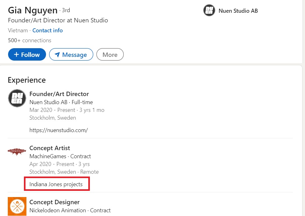 Ako je vjerovati informacijama koje su se našle na LinkedIn profilu concept artista po imenu Gia Nguyen, MachineGames bi mogao raditi ne na jednom, već na nekoliko Indiana Jones projekata.