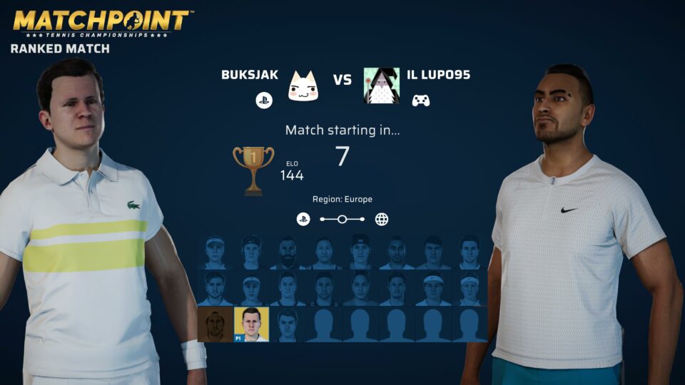 Matchpoint je svakako omogućio da mu stavimo ”+” kod nekih kategorija. Tako imamo licencirane igrače i igračice, tu su Nick Kyrgios kao glavna zvijezda (a i praktički jedini igrač koji se bira za igranje online), Andrey Rublev, Benoit Paire, sve veća zvijezda Carlos Alcaraz, Casper Ruud, Daniil Medvedev, Hubert Hurkacz, Hugo Gaston, Pablo Carreño Busta i Taylor Fritz. Očito se išlo za mlađim nadama, no veliko je razočaranje što nemamo nikoga iz velike četvorke među rosterom, pa i još neke aktualne ili tek nedavno umirovljene igrače kao što su Tsonga, Baghdatis, Gasguet, Čilić i mnogi drugi. Među tenisačicama isto nedostaju neka najveća imena, pa i ona koja danas dobivaju najviše zanimanja javnosti kao Emma Raducanu i Iga Swiatek, no tu su Amanda Anisimova, Heather Watson, Garbine Muguruza, Madison Keys i Victoria Azarenka. Lako je primijetiti kako je broj tenisačica dosta manji od tenisača što je nerazumljiv propust, pogotovo kad se uzme u obzir da su dodana još dva ”legendarna igrača” kao dio Legeds DLC packa, Tommy Haas i Tim Henman. Od svih baš oni, da. Čudni su putevi licenci, prava i dogovora. Što je AO Tennis blokirao, ATP i WTA onemogućili, što je Kalypso mogao, ostaje pitanje, no na kraju možemo ocijeniti ponudu rostera, barem ovu početnu, kao ipak solidnu, no ponešto mršavu. Toliko je još tenisača i tenisačica za koje je sigurno moglo biti mjesta, i šteta što to nismo mogli dobiti već na početku.