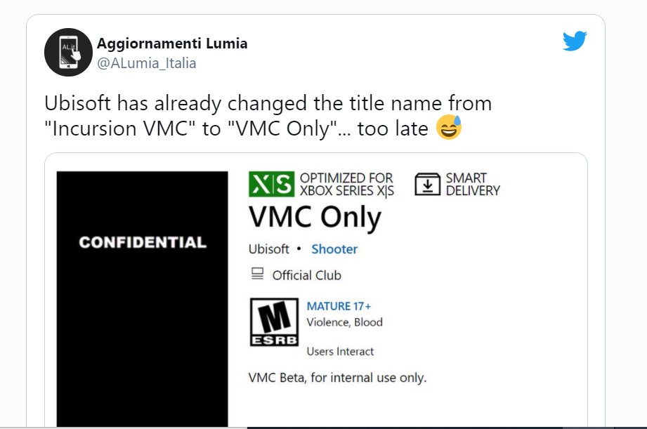Ubisoft je inače prilično loš u čuvanju tajni vezanih za svoje projekte, a mjesto gdje takve tajne vrlo često isplivaju na vidjelo definitivno je Xbox Store. Upravo tamo su se nedavno pojavili detalji o misterioznoj, još uvijek nenajavljenoj igri po imenu Incursion VMC.