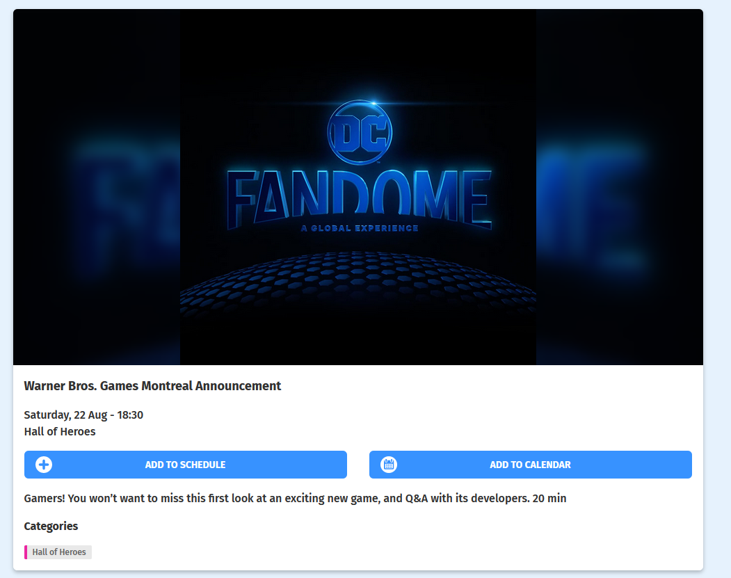 Potvrda da ćemo najavu nove igre doista vidjeti 22. kolovoza tijekom DC FanDomea našla se u samom rasporedu panela i događaja, u kojem još stoji da nas tijekom 20-minutnog panela očekuje i Q&A sesija.