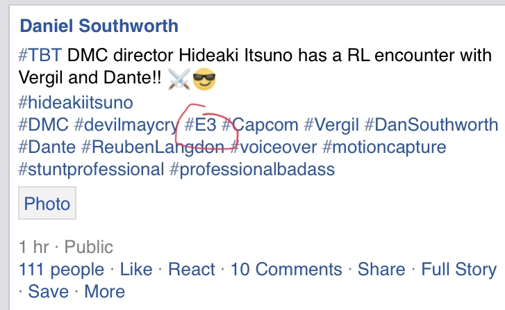 A da nismo daleko od istine, najbolje potvrđuje izjava Daniela Southwortha, glumca poznatog po tome što je posudio glas Vergilu iz Devil May Cry serijala, koji je putem društvenih mreža indirektno otkrio kako bi nova Devil May Cry igra mogla biti najavljena tijekom predstojećeg E3 2018 sajma.