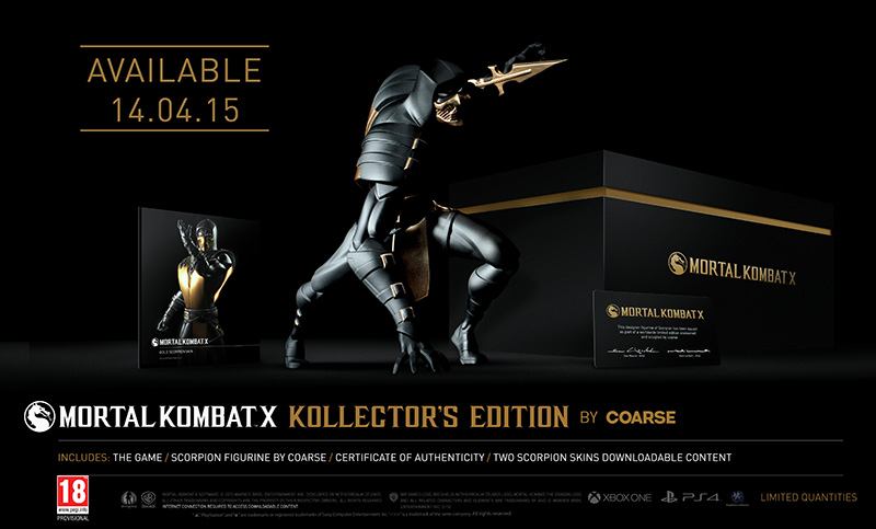 Naime,Warner Bros je najavio Mortal Kombat X Kollector’s Edition, posebno kolekcionarsko izdanje koje će sadržavati i Coarseovu ekskluzivnu figuricu Scorpiona, koja će stići s certifikatom o autentičnosti, potpisanim od strane njezinih kreatora, Svena Waschka i Marka Landwehra. Cijena ovog kolekcionarskog izdanja iznosit će £99.99, a isto će biti dostupno samo u PS4 i Xbox One verzijama.