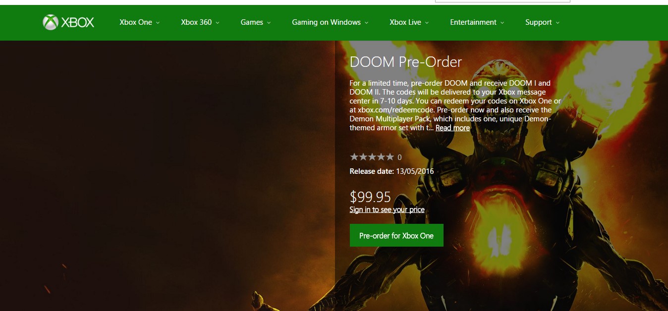 Kako bi ohrabrio Xbox One igrače da naprave pre-order nadolazeće Doom igre, Microsoft je navodno odlučio sve one koji to učine počastiti posebnim bonusom – besplatnim Doom 1 i Doom II igrama.