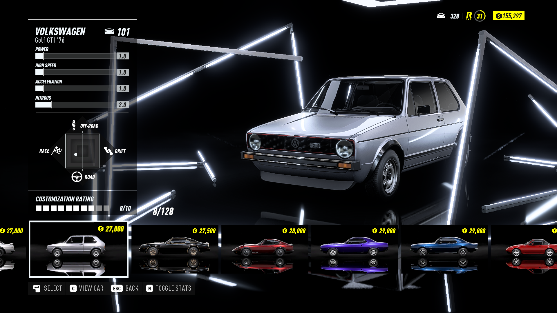 Auta zastupljenih u igri ima stvarno jako puno. Ono što je novitet u odnosu na prethodne djelove je povratak Ferarija na velika vrata. Tu su praktički prisutni svi bitni proizvođači brzih i onih malo manje brzih auta. Osim novih nafuranih aždaja poput Lamba, Porschea i sličnih, mogu se otključati i neki old school primjerci vozila poput starih američkih muscle auta, ali je našoj populaciji možda najbitniji GOLF, doduše kec, ali ako napravimo neku peticiju siguran sam da će za balkansko tržište napravit DLC sa dvojkom.