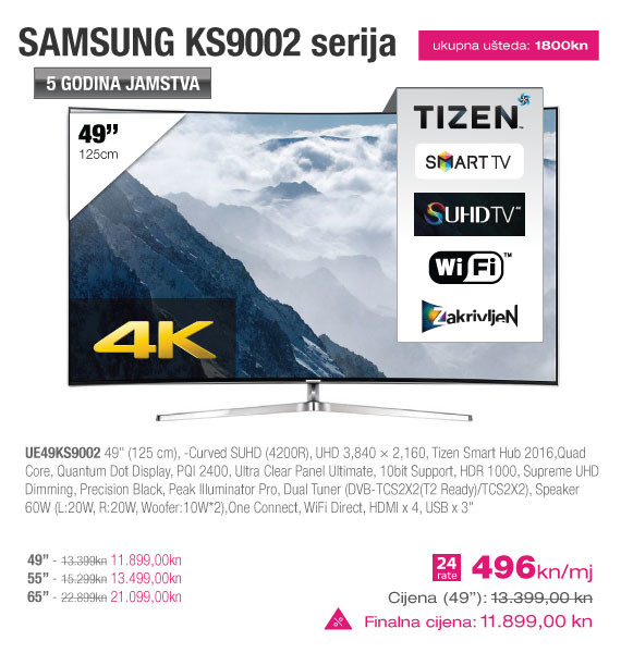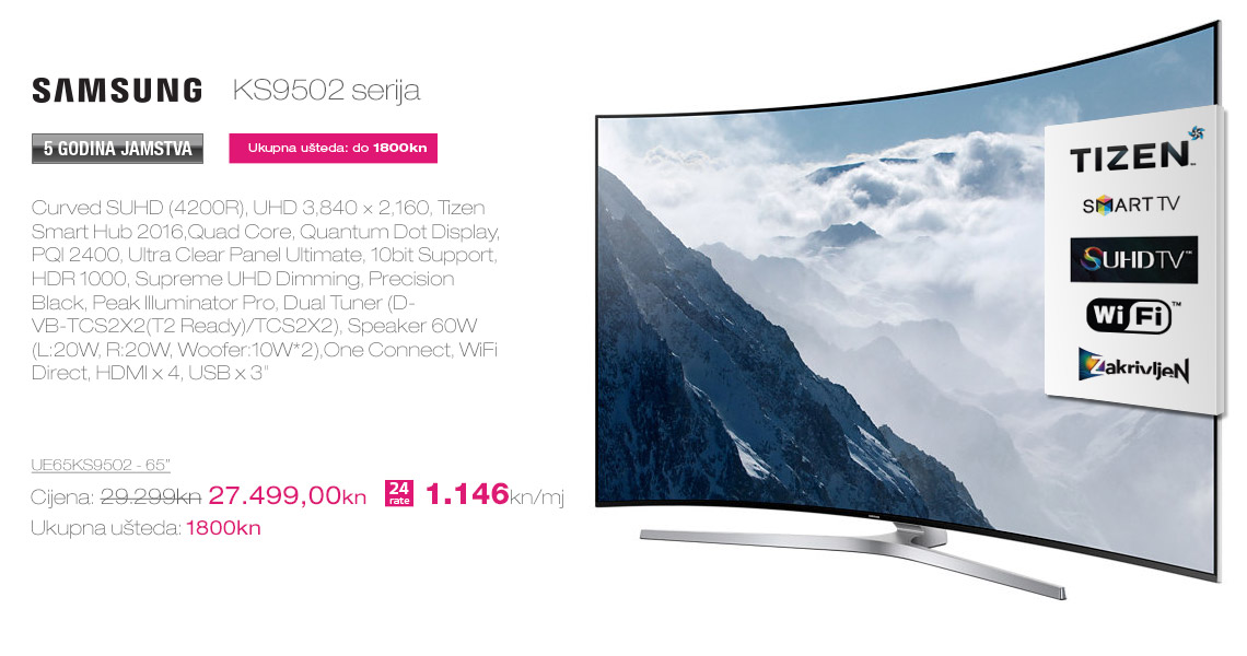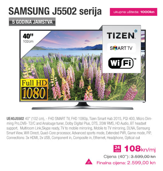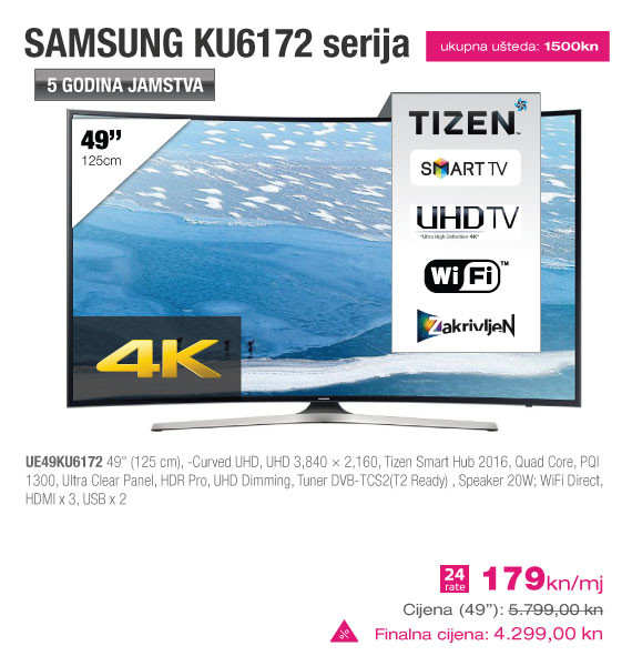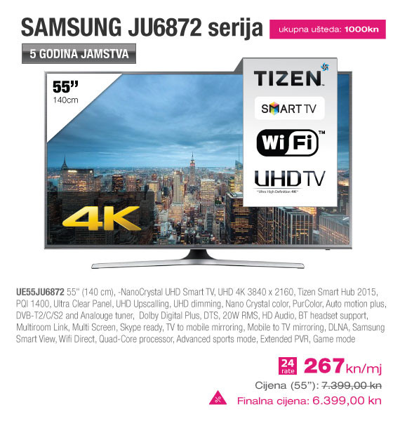 Sancta Domenica, vodeći hrvatski maloprodajni lanac tehničke robe, u partnerstvu s Hrvatskim Telekomom nudi super atraktivnu mogućnost kupovine Samsung televizora po najnižim cijenama na tržištu. Suradnja Sancta Domenice i Hrvatskog Telekoma je logičan korak naprijed u pružanju premium usluge potrošačima. Po prvi puta možete kupiti znatno povoljniji Samsung televizor uz vrhunski MAXtv sadržaj, super brzi internet s brzinama od 100/20 Mbits na optici, te neograničene razgovore u Ultra MAX3 i MAX3 paketima Hrvatskog Telekoma.