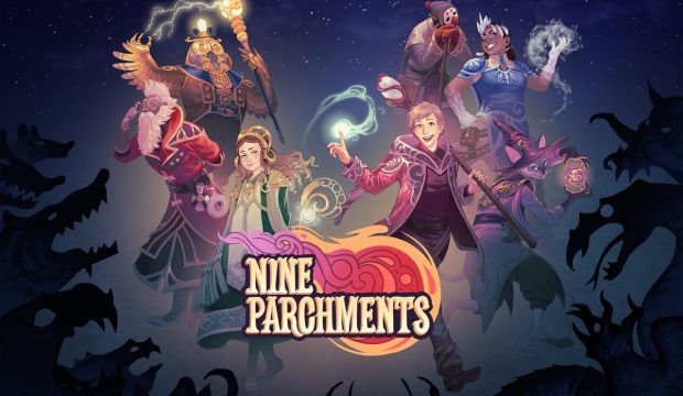 Priča Nine Parchmentsa nam predstavlja grupu studenata magije koji nestrpljivo žele ovladati znanjem čarolija, stoga odluče iskoristiti priliku koja se ukazala nakon nezgode u akademiji. Naime, došlo je do eksplozije (ništa neobično u akademijama čarolije) zbog koje su se po krajoliku u podnožju akademije razasuli pergamenti moćnih magija. I kako to već biva kad je netko izhitren i nepromišljen, studente dočekuju mnoga različita neprijateljski nastrojena bića, ali i opasnost koju predstavljaju jedni drugima u svom početničkom poznavanju čarolija. I to bi bilo sve od priče. Ne, doslovno, to je sve. U početku nas igra upozna s radnjom i kroz cijelu igru prolazimo kroz linearno putovanje u potrazi i borbama za razasutim pergamentima. Povremeni komentari naratora (isti glas iz Trine serijala) i naših studenata začinjavaju putovanje, ali dubljih slojeva priče nedostaje. Što je prava šteta, ako se prisjetimo iskustva s Trine serijalom. Dodatak naraciji predstavljaju i predmeti, tj. njihovi nazivi, poput šešira i čarobnih štapova. Naznake i potencijal bogatije priče postoje i u karakterima koje otključavamo, o kojima možemo pročitati kratku biografiju. Tako će nas nakon uvodne priče očaravati krajolici i dizajn, predstavljajući bogat i bajkovit svijet po kojem lutamo.