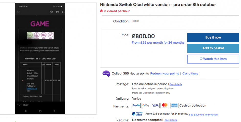 Switch OLED prodaje se po preporučenoj cijeni od $350, ali oni koji ga žele kupiti na stranicama poput eBaya ili Craigslista vidjet će ponude u kojima se konzola prodaje i po 800 funti što je otprilike $950.