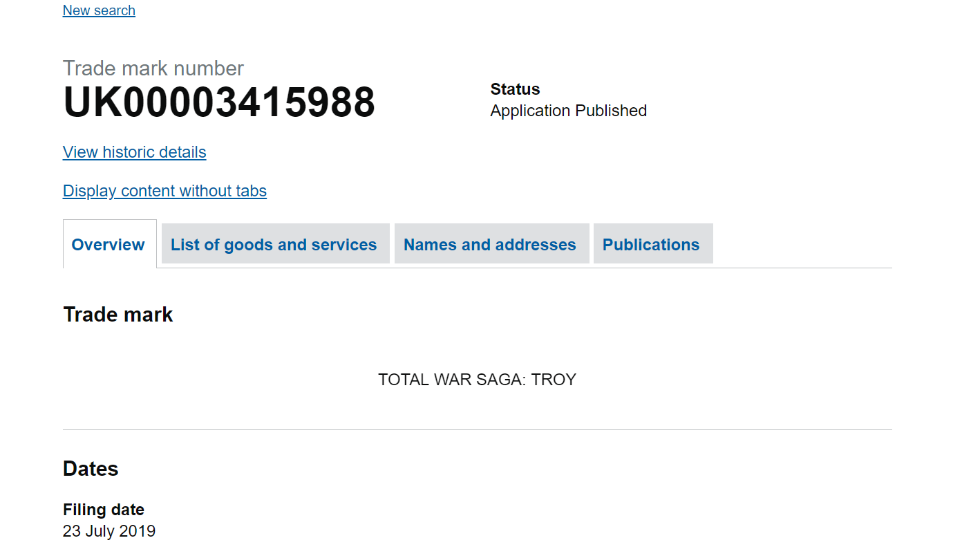 Na navedenoj stranici, osvanuo je Total War Saga: Troy trademark. Njega je registrirao studio Creative Assembly, a ako je vjerovati istom, nova igra mogla bi se odvijati u brončanom dobu stare Grčke, što bi samo po sebi moglo da bude veoma zanimljivo.