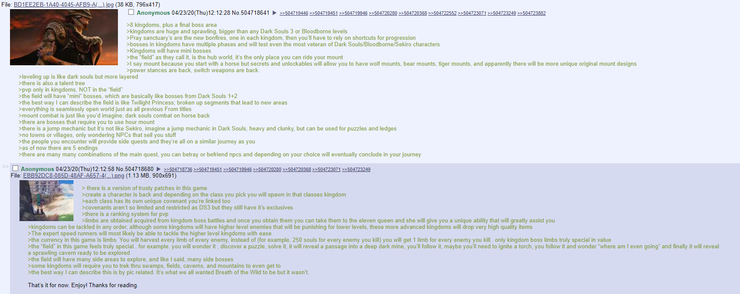 Sve navedeno zvuči vrlo ambiciozno i nekako ide s dosadašnjim konceptima i igrama From Softwarea, no kako se radi o neprovjerenim informacijama, na one konkretnije službene ipak ćemo još malo morati pričekati.
