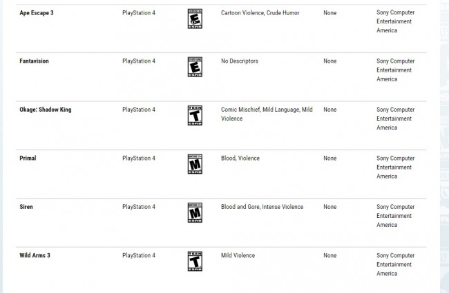 Nastavlja se dolazak PlayStation 2 igara na najnoviju Sonyevu konzolu. ESRB je objavio popis novih igara koje, za pretpostaviti je, dolaze uskoro na PlayStation 4 preko njihovog programa PlayStation Classics. Na popisu se nalaze Wild Arms 3, Siren, Primal, Okage: Shadow King, Fantavision i Ape Escape 3. Fantavision dolazi već danas, dok su mnogi uzbuđeni zbog Wild Armsa, ali i Primala i Ape Escapea 3. Zapravo, sve ove igre će biti favoriti među mnogim gamerima i gamericama.