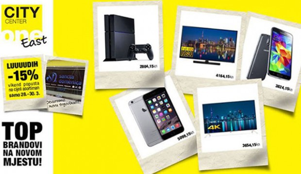 Dakle, trk u City Center One East i uhvatite super popust za najnovije gadgete poput iPhonea 6 za samo 5.099kn, 4K SmartTV vodećih brandova već od 3.655kn ili najnovije PS4 mega-hit naslove poput „Battlefield Hardlinea“, „The Ordera“ ili „Bloodbornea“ po najnižim cijenama!