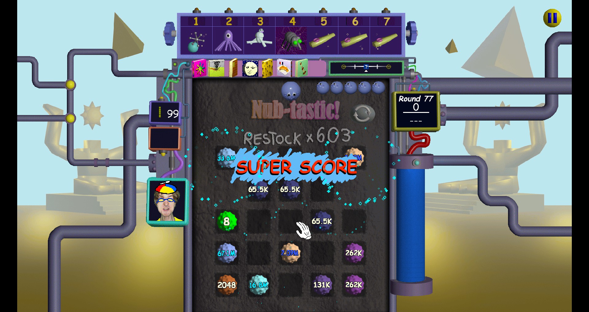Pomalo možda djetinjastog naslova, Nubby’s Number Factory igra je temeljena na popularnom obliku igre na sreću – plinko – ali, naravno, ovdje nema klađenja i mogućnosti gubitka cijele svoje imovine. Plinko se, izvorno u showu The Price is Right, sastojao od velike ploče s izrezima koji su upućivali loptu, koja se spustila sa samog vrha ploče, prema određenim nagradama na dnu ploče. Nubby preuzima osnovni oblik ploče, ali umjesto da se nagrada nalazi na samom kraju ploče, ona je razbacana po ploči u obliku kuglica s brojevima koje pucaju nakon što ih udarite svojom lopticom, odnosno Nubbyjem, te tako skupljate bodove kako biste prešli na sljedeću razinu. Kvaka je u tome što morate dostići određeni broj bodova u svakoj rundi, a što je veći iznos za pobjedu, to su veći i brojevi na kuglicama po ploči. Kad Vam Nubby padne na dno, ako ste dostigli iznos – idete dalje, a ako niste – jedan život manje.
