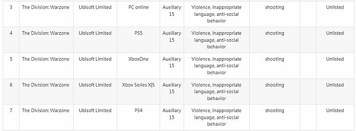 Nikakvi drugi detalji ovom prilikom nisu otkriveni, osim podatka da je The Division: Warzone namijenjen PS4, PS5, Xbox One, Xbox Series X/S i PC. Budući da otkrivanje ratinga neke igre obično znači da se bliži ili njena najava ili njen izlazak, moguće je da ćemo uskoro doznati nešto više.