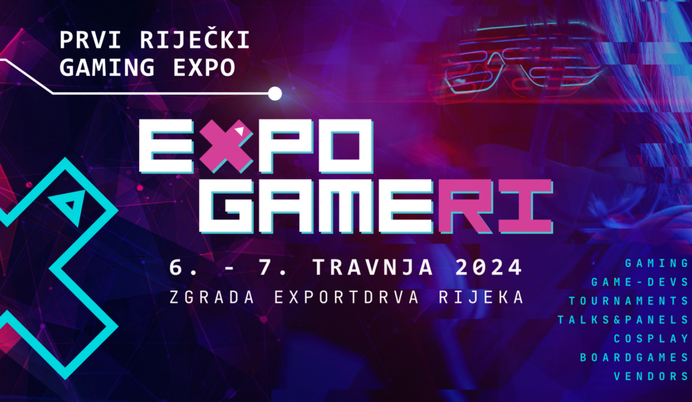 Početkom travnja Rijeka postaje domaćin prvog riječkog gaming expoa – Expo GameRi! Od 6. do 7. travnja 2024., prostor Exportdrva postaje centar gaming svijeta i novih tehnologija, donoseći zabavni i edukativni dvodnevni program namijenjen svim uzrastima.
