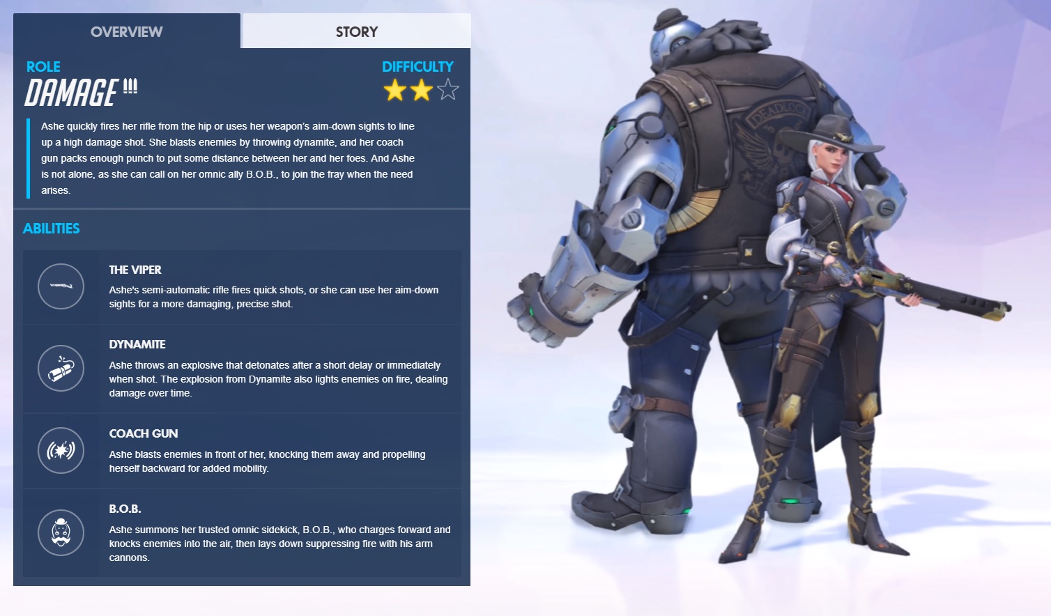 Ashe će se uskoro pridružiti bogatom Overwatch rosteru kao 29. po redu igrivi lik. Njeno glavno oružje je lever-action rifle, dok za bliske duele koristi razorni shotgun. Ashe može bacati i detonirati dinamit za stvaranje veće štete, a njen ultimativni summon je član njene bande B.O.B. koji je u stanju načiniti protivnicima priličnu količinu štete. Kako Ashe izgleda u akciji, pogledajte ispod.