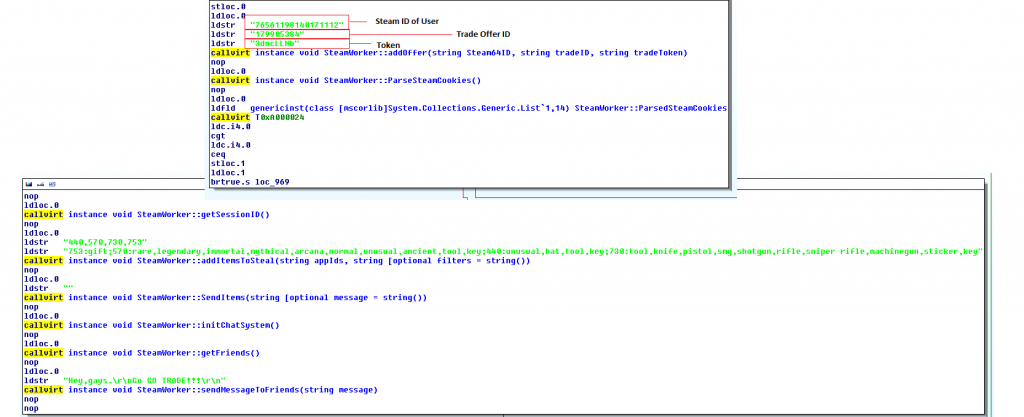 Drugi parametar 179905**4” koristi se za slanje neke ponude korisniku “steamcommunity.com/179905**4” , dok treći parametar predstavlja Token ID