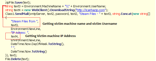 icanhazip.com (fajl koji se koristi za buduće spammovanje). Malware potom šalje ove informacije na napadačev email ID: