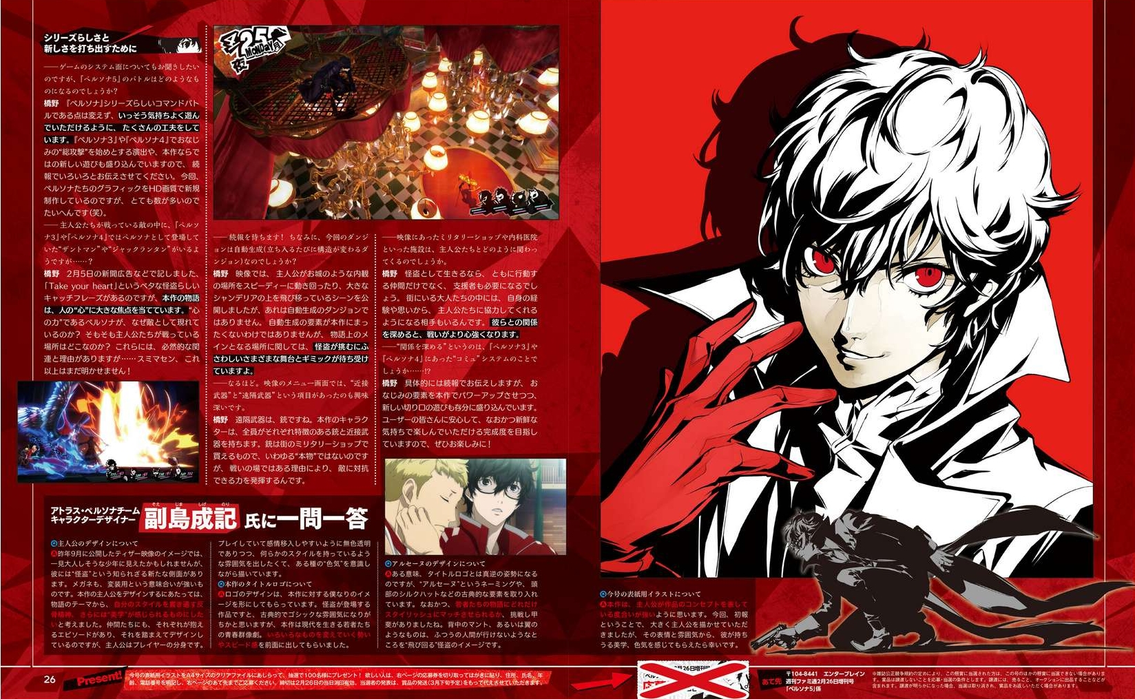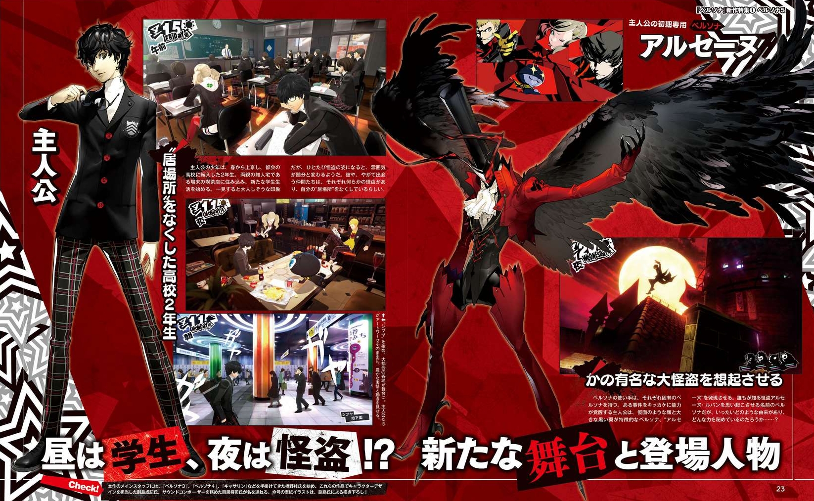 Famitsu je dosta svog zadnjeg broja posvetio petoj Personi, a zahvaljujući ovoj japanskoj publikaciji dobili smo nove slike iz igre kao i dodatne informacije. Slike prikazuju glavnog protagonista igre kao i njegovu Personu Arsene. Prema magazinu, scena u kojoj glavni lik bude obavijen plavim plamenom jest buđenje njegove Persone. Student life, promjene vremena i kalendarski sustav se vraćaju u serijal. Sneak system se također vraća, kao i All-Out napadi. Maske se nose za vrijeme bitki i imaju posebno značenje. Famitsu je potvrdio i da je prošlotjedni trailer je sadržavao scene iz verzije za PlayStation 3.