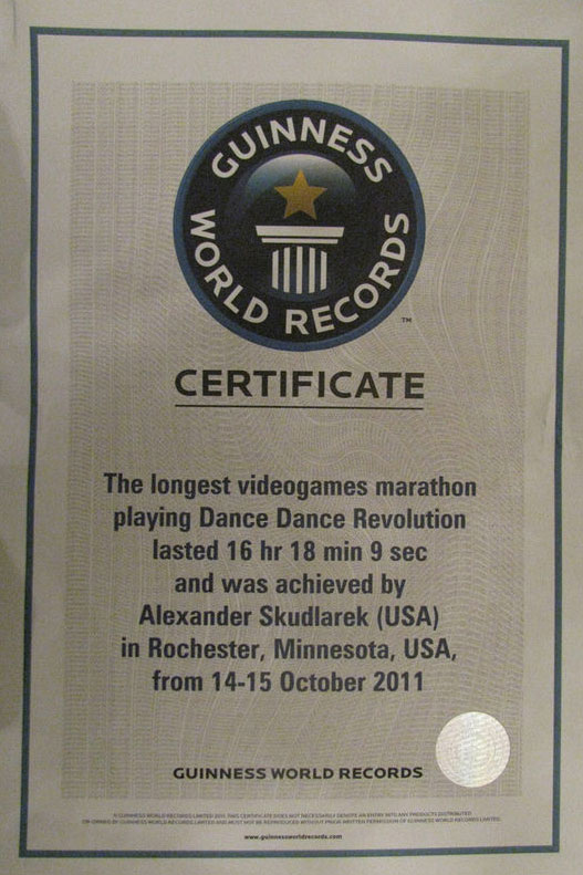 Neki trpaju hot-dogove u “jazovku”, neki gutaju škorpione, neki plešu na video igre, a sve to ne bi li se upisali u Guinnessovu knjigu rekorda. Ovog je tjedna postignut novi rekord u non-stop plesanju na video igru Dance Dance Revolution. Gamer iz Minnesote imena Alexander Skudlarek otplesao je točno 16 sati, 18 minuta i 9 sekundi. Uvijek sam bio fasciniran ovakvim postignućima, prije svega, motivima koje tjeraju ljude na pothvate “vrijedne” Guinnessa. Za svoj je trud dobio i prikladnu diplomu. Uživajte u Alexovom plesačkom umijeću u kratkom klipiću njegovog “pothvata”.