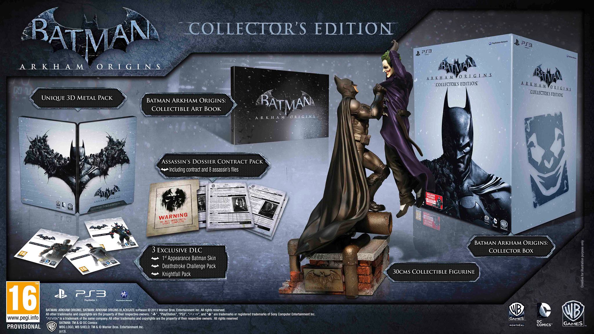 Danas je otkriveno prvo posebno izdanje najnovije Batman Arkham igre. Kažemo, prvo, jer vjerujemo da ćemo, što se više bližimo izlasku igre, dobiti još neka izdanja igre koja će nam oslabiti novčanike. Batman: Arkham Origins Collector’s Edition vam donosi 3 DLC-a, lijepu figuricu Batmana i Jokera, posebno pakiranje, dosjee neprijatelja/ubojica iz igre i još puno toga što možete vidjeti na slici koju vam prilažemo.