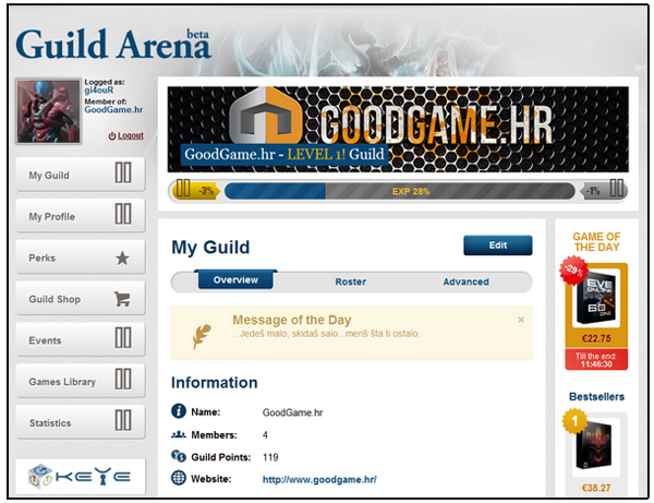 Guild Arena is a new place for gamers that combines an intuitive and user friendly interface for online gaming communities and a partnership programme which gives them a whole lot of benefits. Our main aim is to provide gamers with a brand new community website where they can socialize, share interests with their friends and advance to new levels after creating a guild. Since we are gamers ourselves we wanted to focus mostly on the needs of expanding gamer communities and try to rekindle the very popular features of the biggest gaming websites. That’s why we designed a personal space for guilds as well as for the non-attached members.