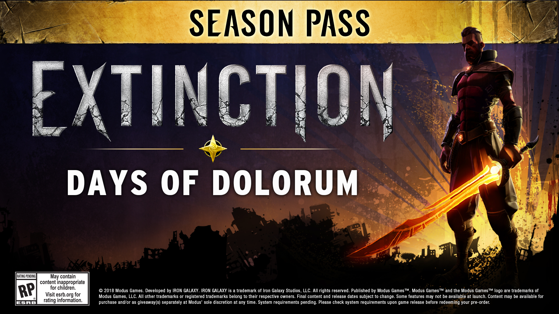 Iron Galaxy Studios potvrdio je kako će Extinction na PS4, Xbox One i PC stići već 10. travnja te da će igrači moći birati između standardnog izdanja koje će koštati $59.99 i Deluxe izdanja koje će biti nešto skuplje ($69.99), ali će uz njega dolaziti i Season Pass za igru nazvan Days of Dolorum, koji će biti dostupan i za individualnu kupovinu po cijeni od $14.99.