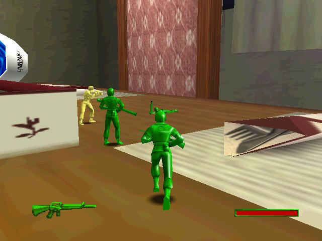 Jedan od primjera iz Army Men franšize na koji se još nismo osvrnuli, bio je i klasik iz 1999. godine – Army Men: Sarge’s Heroes. Ovaj naslov razvio je 3DO, a unatoč tehničkim ograničenjima i često bizarnoj priči, uspio je osvojiti srca igrača diljem svijeta. Priča Sarge’s Heroes prati Sargenta Hawkesa, vođu zelenih vojnika, koji pokušava spasiti svoje suborce i poraziti zlog vođu tan vojnika (da, žuti plastični vojnici su i u ovoj Army Men igri glavni nemesisi), generala Plagga. No, ovdje dolazi do zanimljivog preokreta, koji je opet poprilično očekivan jer se dogodi u svakoj Army Men igri, na ovaj ili onaj način – rat se odvija na granici između njihovog plastičnog svijeta i stvarnog svijeta ljudi. Glavni protagonist Sarge, zajedno sa svojim prijatejima punima karaktera (i nekih vještina) naoružan do zuba kreće u borbu po kuhinji, kupaonici ili dvorištu punom gigantskih travki!