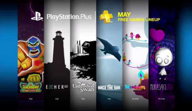 Kada je u pitanju svibanjska ponuda, najviše će profitirati PlayStation 4 igrači, koji će dobiti čak pet od ukupno šest ponuđenih igara. Dvije od tih pet igara bit će rezervirane isključivo za igranje na PlayStationu 4, a u pitanju su igre Ether One i Guacamelee! Super Turbo Championship Edition. Murasaki Baby će biti moguće zaigrati samo na PS Viti, dok će Hohokum, The Unfinished Swan i Race the Sun stići kao cross buy naslovi te će biti dostupni za sve tri Sonyjeve konzole (PS3, PS4 i PS Vitu).