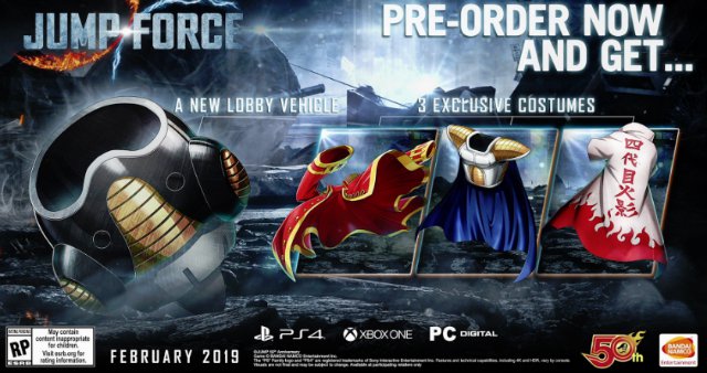 Jump Force Season Pass će se sastojati o čak devet dodatnih likova o kojima ćemo više doznati u mjesecima koji su pred nama, a kada su u pitanju pre-order bonusi, vrijedi napomenuti da će svi koji naprave prednarudžbu igre dobiti tri ekskluzivna kostima i Friezin Hover Pod kojeg je moguće koristiti kao lobby vehicle.