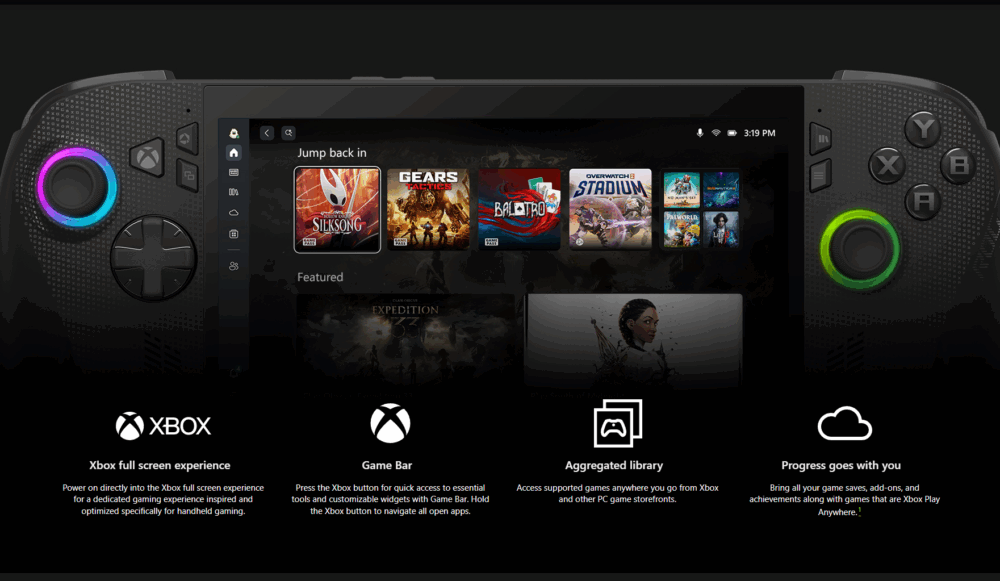 Prilikom pokretanja, automatski ćemo se naći u Xbox sučelju koje će pratiti Xbox Game Bar kroz koji ćemo se kretati do svih igara i aplikacija što zvuči puno intuitivnije od trenutnog (nelošeg) Armory Cratea koji se vrti na trenutnim Ally modelima. Dodatna potvrda je stigla da ćemo nativno vrtiti Steam, Ubiconnect i općenito sve Windows aplikacije, odnosno storeove (Epic, GOG, EA…) što apsolutno diže vrijednost ovog komada hardvera jer možemo “dofurati” sve svoje igre na njega.
