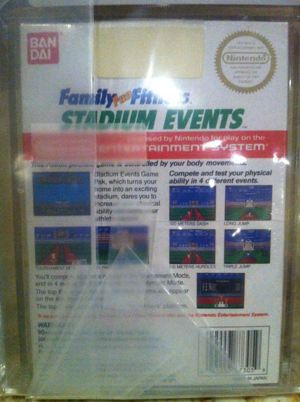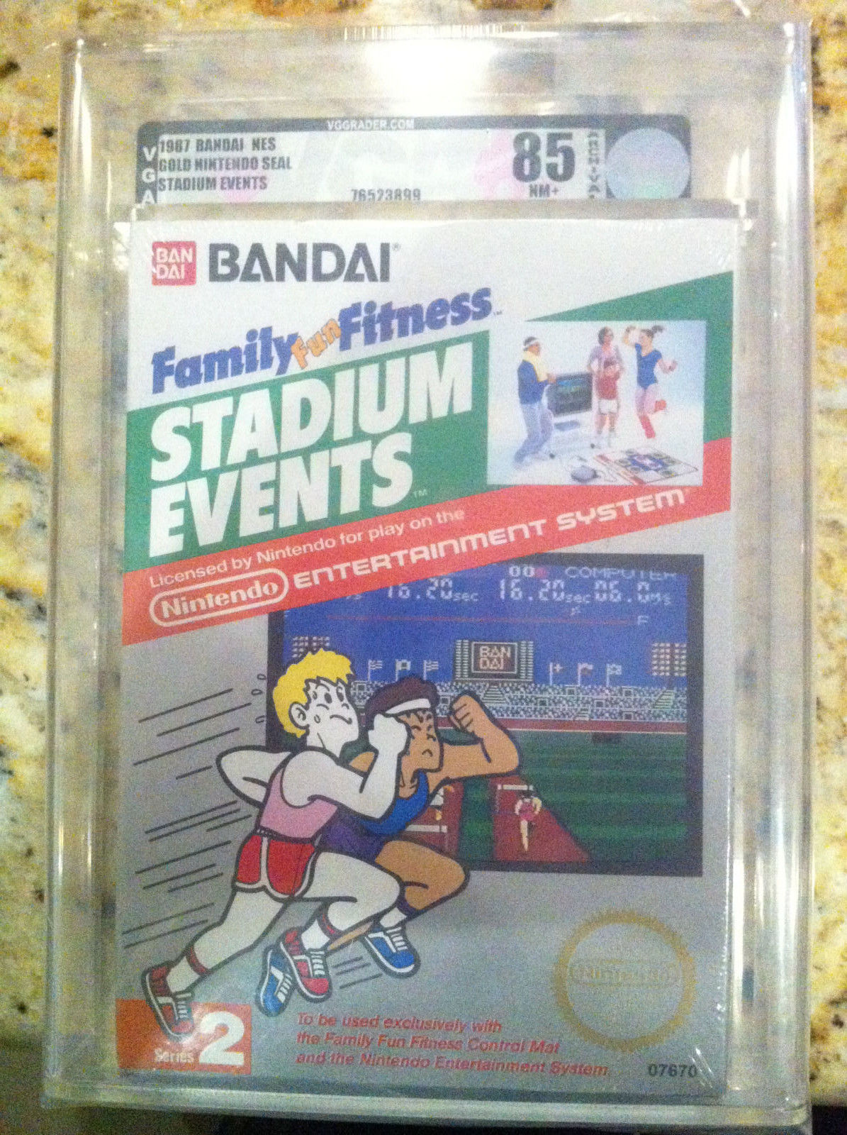 Unatoč velikim igrama koje igramo danas i koje su, same po sebi, već dovoljno skupe, svako malo se pojavljuje i neka stara rijetka igra koja svojom skupoćom šokira svijet. Jedna od tih igara je dosta rijetka igra za prvu Nintendo konzolu kojaće se prodati na eBayu za čak 105 tisuća američkih dolara. Stadium Events, koju je izdao Bandai davne 1987.godine, se smatra jedno od najrijeđih konzolaških igara prvenstveno zbog toga što je bila povučena s tržišta samo nekoliko dana nakon službenog izlaska. Igra je bila planirana za korištenje zajedno sa posebnim gaming madracem (rane verzije današnjeg floor padova koje imamo sa Dance Dance Revolutionom), kojeg je Nintendo otkupio te povukao već objavljenu igru sa tržišta jer svoju verziju te tehnološke inovacije još nisu uspjeli dovršiti. Bilo je proizvedeno samo 2000 kopija, od čega je samo 200 završilo u trgovinama, a od toga ih je bilo prodano jako malo. Poznato je da postoje samo 2 primjerka koja su još uvijek u originalnom pakiranju, a od toga je jedan upravo prodan. Vlasnik je bio bivši zaposlenik Nintenda koji je tijekom tog vremena radio tamo.