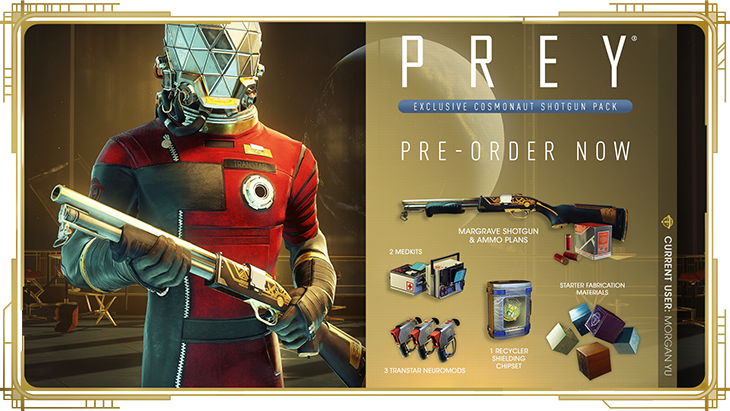 Kada su u pitanju pre-order bonusi, svi oni koji naprave prednarudžbu igre na poklon će dobiti Cosmonaut Shotgun Pack, koji se sastoji od nekoliko korisnih alata za borbu protiv Typhon aliena – tu su tri Neuromoda (koji se koriste za otključavanje novih sposobnosti), dva medkita te planovi za kreiranje municije za shotgun kao i planovi za Margrave Shotgun dizajniran posebno za obitelj Yu.
