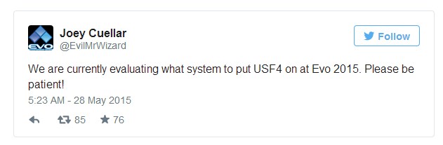 Organizatori Evo turnira trenutno razmatraju koju verziju igre da iskoriste kao zamjenu za problematičnu PS4 verziju, a u međuvremenu Sony i Capcom zajedničkim snagama pokušavaju pronaći što brže i efikasnije rješenje, jer odugovlačenje s ovim problemom moglo bi naškoditi i popularnosti nadolazećeg Street Fightera V, koji bi početkom iduće godine trebao stići na PS4 i PC.
