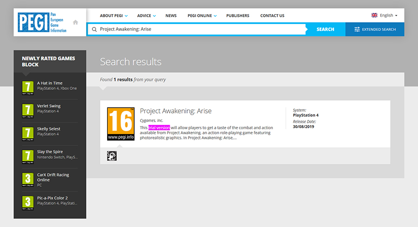 Naime, Project Awakening: Arise trademark, koji je početkom ove godine registriran u Europi, službeno je dobio svoj rating, što znači da bi se CyGames mogao spremati na skoro otkrivanje igre. To nije sve, jer izgleda da bismo uz novu najavu igre mogli vidjeti i igrivu demo verziju.