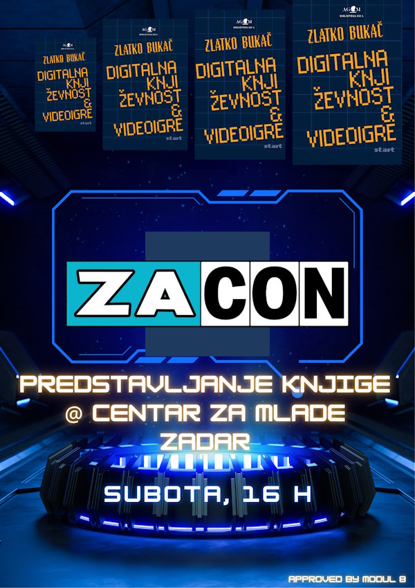 U sklopu prve zadarske konvencije ZaCon, koja se održava 11. i 12. travnja u Centru za mlade Zadar, bit će predstavljena i knjiga našega Zlatka Bukača, “Digitalna književnost i videoigre”.
