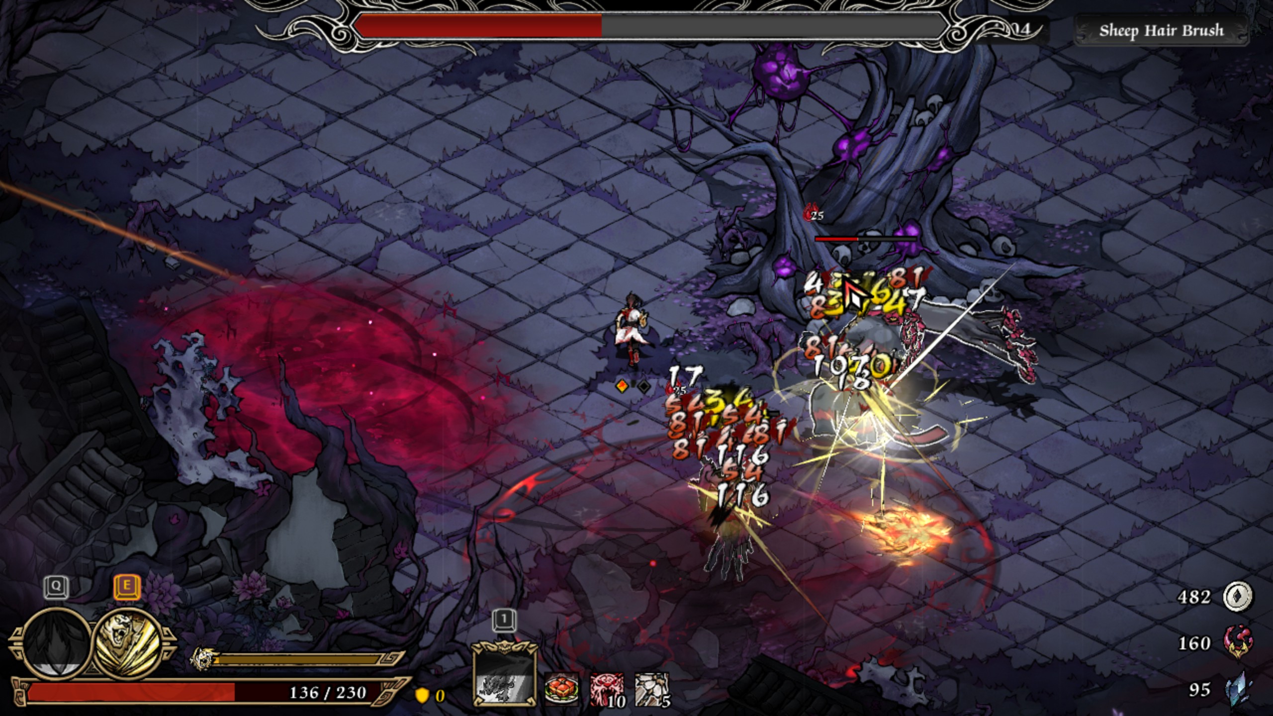 Realm of Ink jasno označava trenutak kada ćete se suočiti s bossom, a to je kada dođete do tržnice sa stvarima. Nakon što riješite otprilike pet ruta, skupit ćete nekoliko vrsta valuta. Svi predmeti i vještine imaju svoju razinu rijetkosti, pa je logično uvijek ciljati na Legendary opremu. Zanimljivo je što, osim standardnih napada, imate i posebne vještine koje otključavate pomoću Inkova, ali ih možete koristiti tek kada ih nadogradite na odgovarajuću razinu. Hrana ne samo da liječi, već donosi i razne pogodnosti. Osim toga, možete birati i razne perkove koje kupujete novcem, a ako vam nisu dovoljno dobri, moguće ih je resetirati i pokušati ponovno.