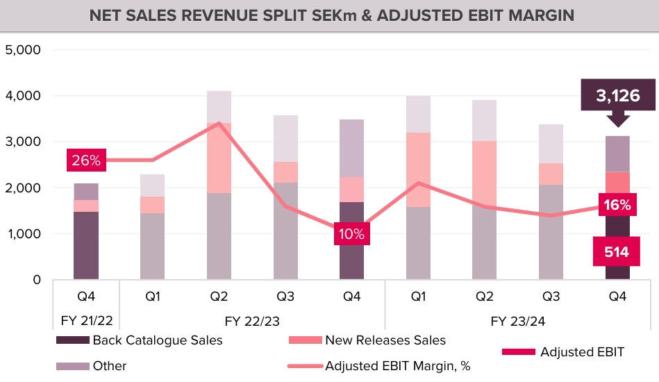 Nova izdanja igara za PC i konzole bila su svijetla točka za Embracer, generirajući 392 milijuna dolara, što je povećanje od 44,6% u odnosu na prethodnu godinu. Ključne uspješnice uključuju Star Wars: Battlefront Classic Collection i South Park: Snow Day, koji su ispunili očekivanja. Tomb Raider 1-3 Remastered je nadmašio očekivanja, dok je Alone in the Dark podbacio. Deep Rock Galactic: Survivor, s druge strane, nadmašio je očekivanja, pokazavši snažnu tržišnu privlačnost.